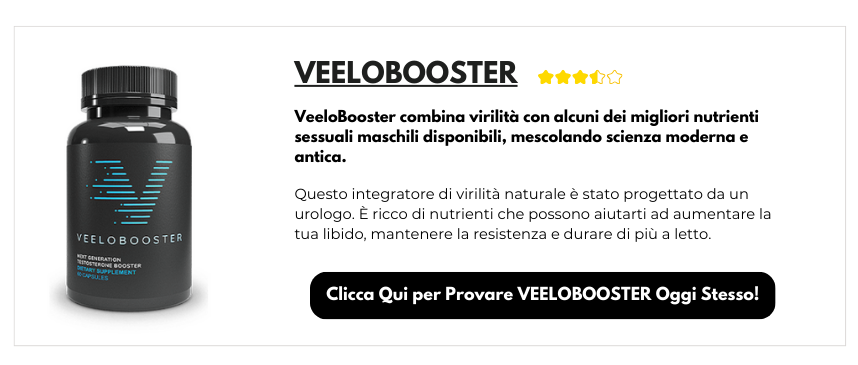 Al terzo posto nella nostra lista delle migliori pillole per la potenza maschile c’è VeeloBooster. Progettato da un rinomato urologo, questo integratore di “Forza e Prestazioni Massime Maschili” ha aiutato gli uomini a superare i loro obiettivi sessuali più ambiziosi per anni.